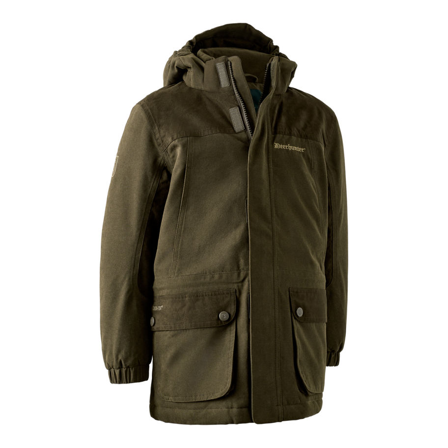 MPMVP: WP 8000 mm / MVP 5000 gA Youth Eagle Téli Dzseki a hideg körülményekhez lett tervezve, és fiatal kalandorok számára nyújt védelmet az időjárás viszontagságaival szemben. A klasszikus vadász stílust ötvözi a modern funkcionalitással, és azonos melegséget és praktikusságot biztosít, mint a felnőtt változat. A szintetikus velúr részletek tovább emelik a klasszikus vadász stílust, míg a levehető kapucni praktikus kiegészítő. A szigetelt, szélálló és vízálló dzseki a Deer-Tex® Performance Shell membránnak köszönhetően biztosítja, hogy a fiatal vadász szárazon és kényelmesen maradjon, miközben aktívan mozog, és melegen tartja hosszú napokon, bármilyen időjárási körülmény között. Az állítható húzózsinóros derékrész, előre formázott könyökök és a rugalmas mandzsetta lehetővé teszi a testre szabott illeszkedést. A praktikus zsebek biztosítják, hogy mindennek legyen helye, így a fiatal vadásznak vagy felfedezőnek lehetősége van élvezni a szabadtéri élményeket anélkül, hogy a kezei tele lennének, miközben melegen, szárazon és kényelmesen érzi magát.